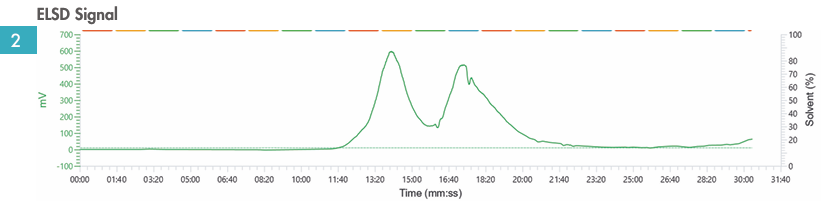圖2:蒸發(fā)光散射檢測(cè)器呈現(xiàn)優(yōu)異的信號(hào)強(qiáng)度與平滑效果